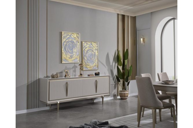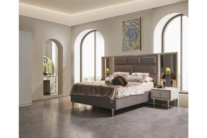 | Gardırop | Gövde, suntalam malzemedir. Ön yüzler, MDF malzeme üzeri lake boya ile üretilmiştir. CNC desenler ile dekore edilmiştir. Aydınlatma özelliği bulunmaktadır. |