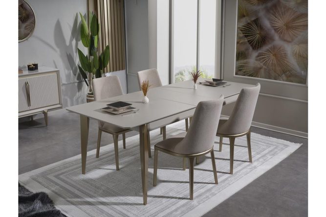 | Yemek Masası | Üst tabla MDF malzeme üzeri lake boya ile üretilmiştir. Masa tablası ortadan açılabilir özelliğe sahip değildir. |