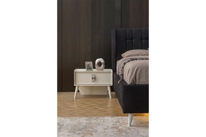 | Komodin | MDF malzeme üzeri boya ile üretilmiştir. Ayaklar ahşap malzemedir. Çekmecelerde yavaşlatıcı tandem ray kullanılmıştır. |