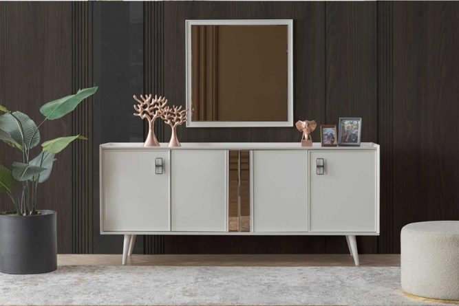 | Konsol | MDF malzeme üzeri lake boya ile üretilmiştir. Ayaklar metal malzemedir. Aydınlatma özelliği bulunmaktadır. |