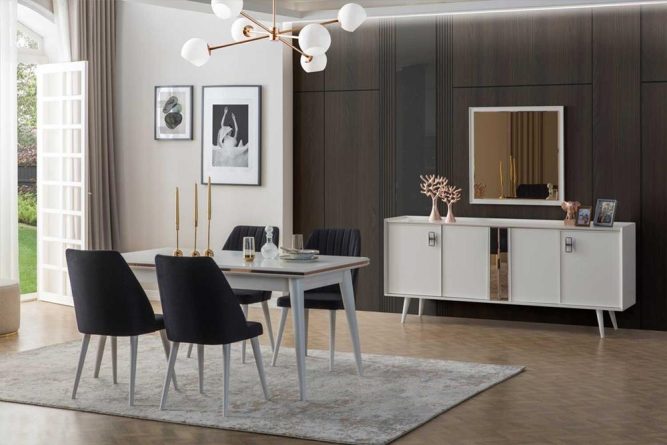 | Takım İçeriği | 1 Adet Konsol ve Aynası, 1 Adet Yemek Masası 1 Adet Bench ve 4 Adet Sandalyeden Oluşmaktadır. |