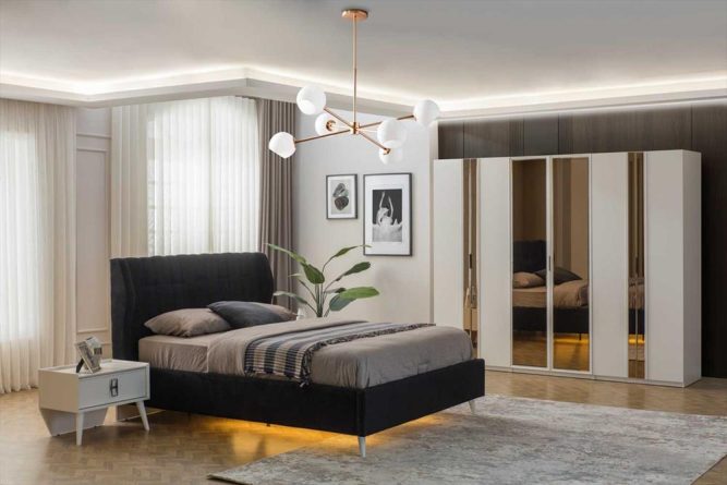 | Takım İçeriği | 1 Adet Gardırop, 1 Adet Karyola ve Başlığı, 2 Adet Komodin, 1 Adet Şifonyer ve Aynasından Oluşmaktadır. |