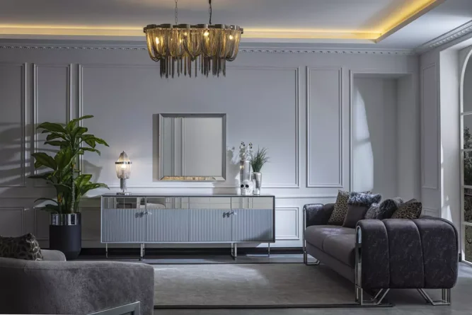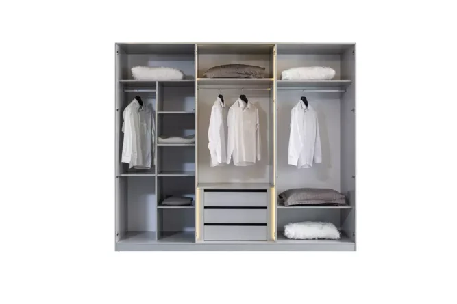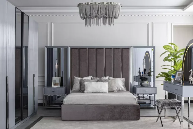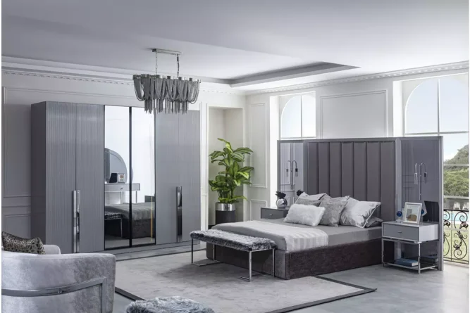 | Gardırop | Gövde, suntalam malzemedir. Ön yüzler, MDF malzeme üzeri lake boya ile üretilmiştir. CNC desenler ile dekore edilmiştir. Aydınlatma özelliği bulunmaktadır. |