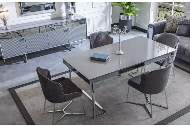 | Yemek Masası | Üst tabla MDF malzeme üzeri lake boya ile üretilmiştir. Masa tablası ortadan açılabilir özelliğe sahip değildir. |