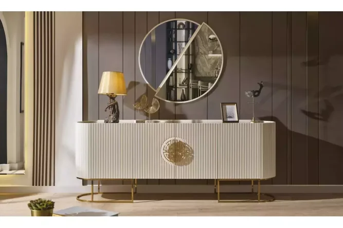 | Konsol | MDF malzeme üzeri lake boya ile üretilmiştir. Ayaklar metal malzemedir. Aydınlatma özelliği bulunmaktadır. |