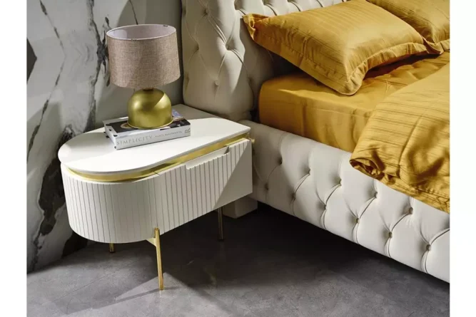 | Komodin | MDF malzeme üzeri lake boya ile üretilmiştir. Ayaklar metal malzemedir. Çekmecelerde yavaşlatıcı tandem ray kullanılmıştır. |