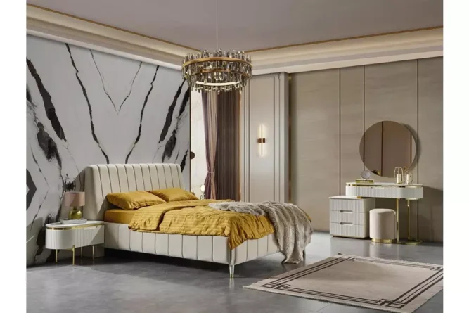 | Gardırop | Gövde, suntalam malzemedir. Ön yüzler, MDF malzeme üzeri lake boya ile üretilmiştir. CNC desenler ile dekore edilmiştir. Aydınlatma özelliği bulunmaktadır. |