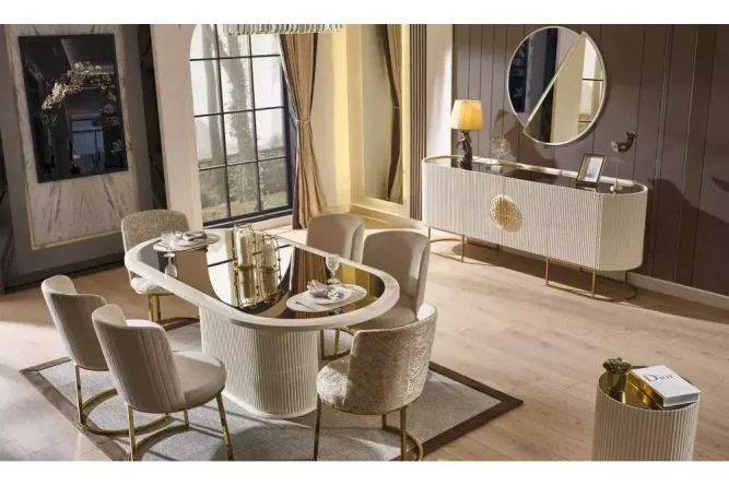 | Takım İçeriği | 1 Adet Konsol ve Aynası, 1 Adet Yemek Masası ve 6 Adet Sandalyeden Oluşmaktadır. |
